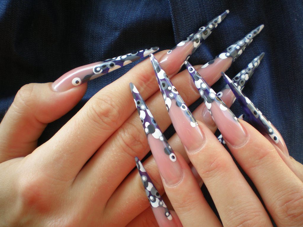 Стилет – «кошачьи ногти», которые пользовались популярностью в 40-х годах. Подобную форму выбирают экстравагантные девушки.