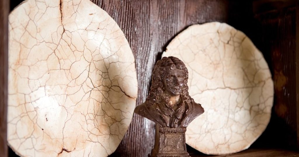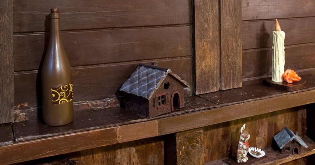 Все в этом небольшом домике — от камина, комода и канделябров до книг и чашек — сделано из настоящего съедобного шоколада.