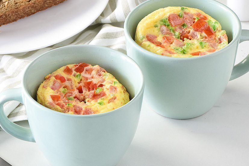 Взбейте в большой чашке или миске яйца, молоко, сыр, помидор, халапеньо, соль и перец. Если миска подходит для микроволновой печи, переместите её и разогрейте завтрак в течение 30 секунд. Если не подходит, перелейте яичную смесь в другую ёмкость. Достаньте её по истечению 30 секунд и размешайте. Затем снова поставьте в микроволновку на 70-80 секунд или до тех пор, пока яйца не увеличатся в объёме.