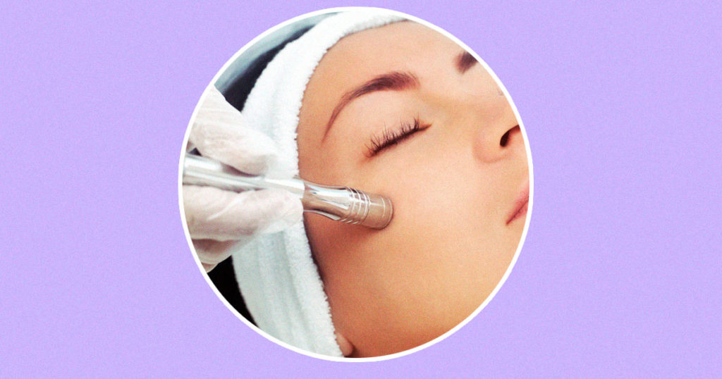 Микродермабразия или шлифовка лица – это процедура, направленная на сужение пор, удаление шеулшений и выравнивание текстуры кожи. Во время микродермабразии кожа шлифуется особым иснтрументом с микрокристаллами оксида алюминия и мелкодисперсного песка. Для достижения наилучшего результата, как правило, назначается курс из 5-6 процедур.