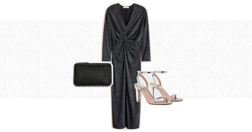 Для вечернего выхода в свет выберите длинное металлизированное платье с глубоким декольте и присобранной деталью, удачно акцентирующей бюст. Темный цвет, правильная длина и приталенный фасон платья поможет зрительно сузить силуэт фигуры, скрыть недостатки и привлечь внимание к достоинствам. Завершите образ серебристыми босоножками на шпильке и интересным клатчем на цепочке.