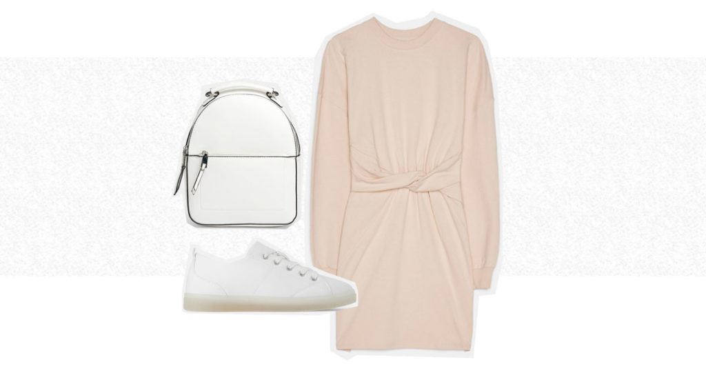 В простые будние дни также не стоит отказывать себе в удовольствии носить красивые, но в тоже время удобные платья. Для повседневной носки выберите, к примеру, мягкое плюшевое платье-мини с объемными рукавами и узлом на талии. Оно, как и предыдущие модели, зрительно увеличит размер груди и сбалансирует фигуру. Сочетайте его с базовыми кедами и рюкзаком для максимального комфорта.
