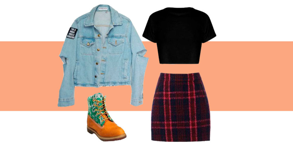 Если вы выбрали классическую модель тимберлендов и предпочитаете лук «канадского дровосека» — поиграйте с объемом. Пусть парка будет овер-оверсайз (это как пост-пост модерн, трансформация трансформации уже произошла и объем — это норма сегодня), джинсы будут как минимум свободными, а хорошо бы бананами в духе 80-ых. А рубашку в клетку лучше заменить на платье в клетку, надетое поверх джинс и топа вместо кардигана.