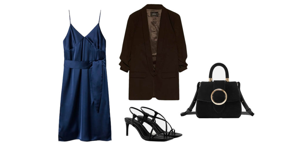 Атласное платье-комбинация – стильный и трендовый элемент одежды, способный стать основой для множества женственных и красивых нарядов. Главное – выбрать правильную длину, фасон и оттенок данного платья. Мы предлагаем вам обратить внимание на платье-комбинацию благородного темно-синего цвета, безупречным дополнением к которому станет классический черный блейзер, модные в этом сезоне босоножки на шпильке с квадратным носком и мини-сумочка не банального дизайна. Этот аристократичный образ станет прекрасным вариантом для вечернего выхода в свет и несомненно получит огромное количество комплиментов!