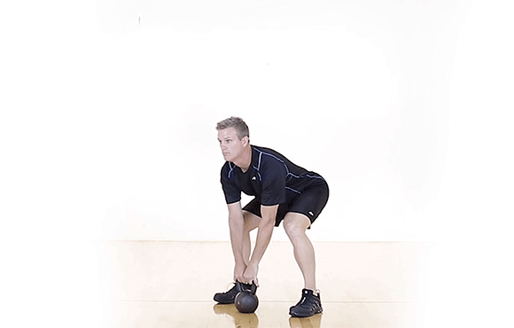 Встаньте, слегка согнув ноги в коленях. Спина прямая. Держите гирю двумя руками и контролируемым движением поднимите её с пола. Сосредоточьтесь на напряжении мышц ягодиц и подколенных сухожилий. Медленно опустите вес в исходное положение. Сделайте короткую паузу и продолжайте выполнять упражнение. Поддерживайте спину прямой на протяжении всего упражнения.