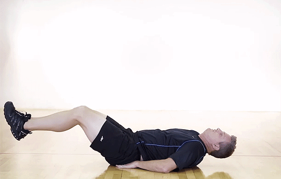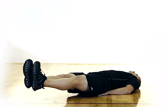 Лягте на спину, положив руки под бёдра, ноги прямые и слегка оторваны от пола. Согните их в коленях, подтянув колени к груди, а затем выпрямите, подняв вверх (пятки смотрят в потолок). Напрягите мышцы пресса, опустите ноги обратно в исходное положение перед началом следующего повторения.