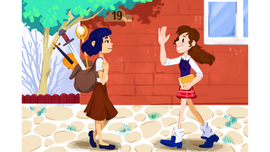 1. Алиса – девушка с короткими волосами. Почему? Обратите внимание на номер дома за ней – это 19. Нечетные числа обычно идут по левой стороне. Девушка с короткой стрижкой идет в сторону домов с большими номерами. 23 больше 19, значит это Алиса. Алиса идет на занятия по актерскому мастерству. Где еще понадобится скрипка, меч и скипетр одновременно?