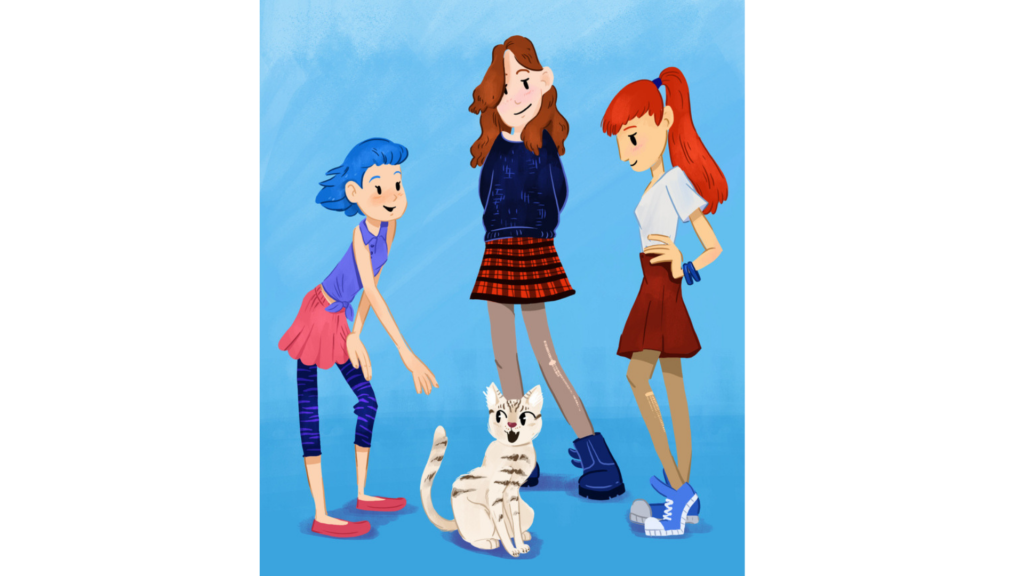 На картинке три девушки: Елена, Мария и Ирина. Все девушки играли с котом. Но кто из них является его владельцем?