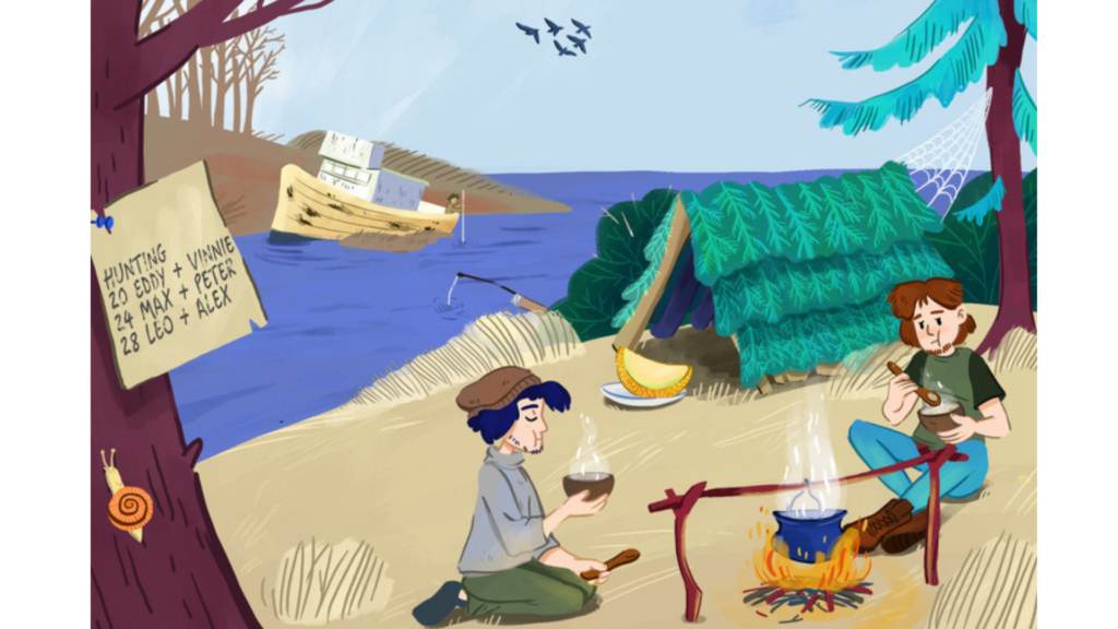 2. Паук сплел паутину возле палатки. Это означает, что они пробыли там как минимум несколько дней.