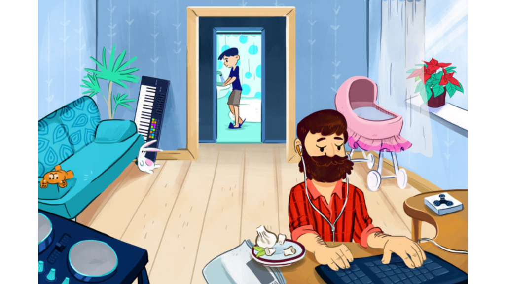 1. Вы можете увидеть диджейское оборудование в углу комнаты, а отец выглядит как хипстер. Это означает, что его профессия – диджей.