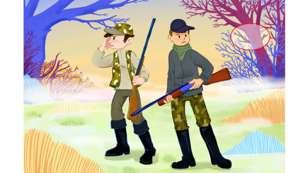 Два охотника охотились на оленя. Он появился в лесу раньше, а затем внезапно исчез. Охотники побежали за ним, но потеряли его. Однако олень недалеко. Вы сможете найти его?