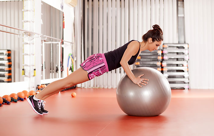 Это упражнения задействует практически все мышцы верхней части тела. Для выполнения таких отжиманий вам понадобится какое-нибудь возвышение. Фитбол будет идеальным вариантом. Обопритесь о него руками и выполняйте отжимания, сгибая локти под углом 90 градусов. Сделайте 10 повторений.