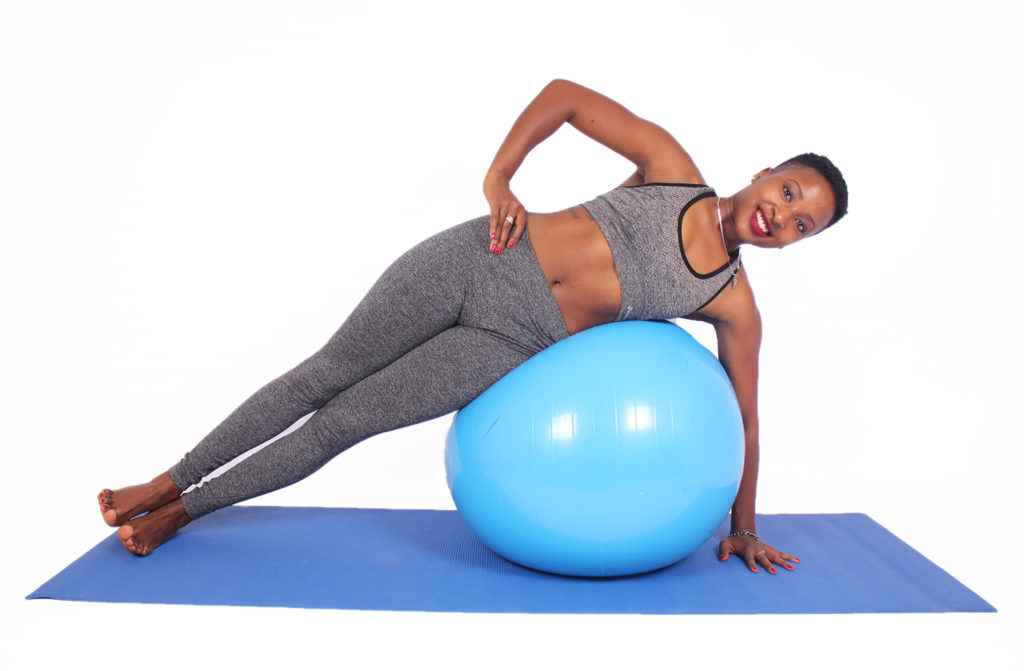 Начните с боковой планки на фитболе, задерживаясь на 20 секунд с каждой стороны. Держите равновесие и не двигайте корпус во время упражнения.