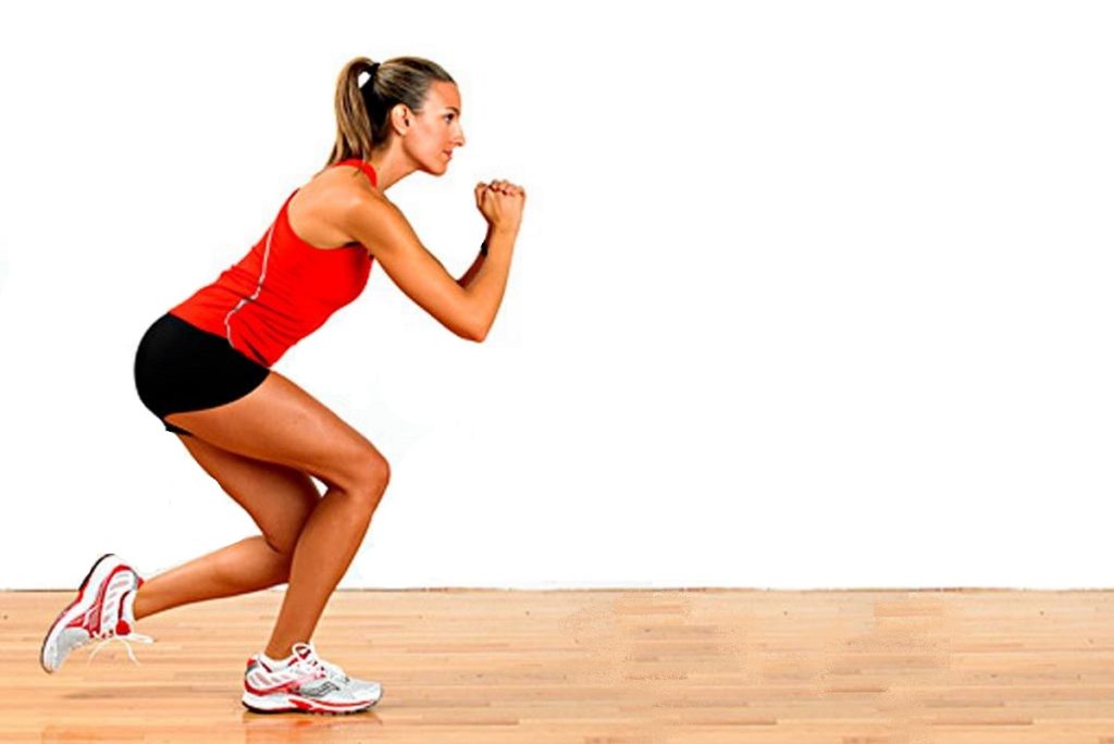 Встаньте ровно, ноги вместе, руки вытяните вперед ладонями вниз. Согните ноги в коленях и опускайтесь вниз до тех пор, пока ваши ягодицы не коснутся пяток. Пятки во время выполнения этого упражнения непроизвольно оторвутся от земли, а колени выдвинутся вперед далеко за уровень пальцев ног.