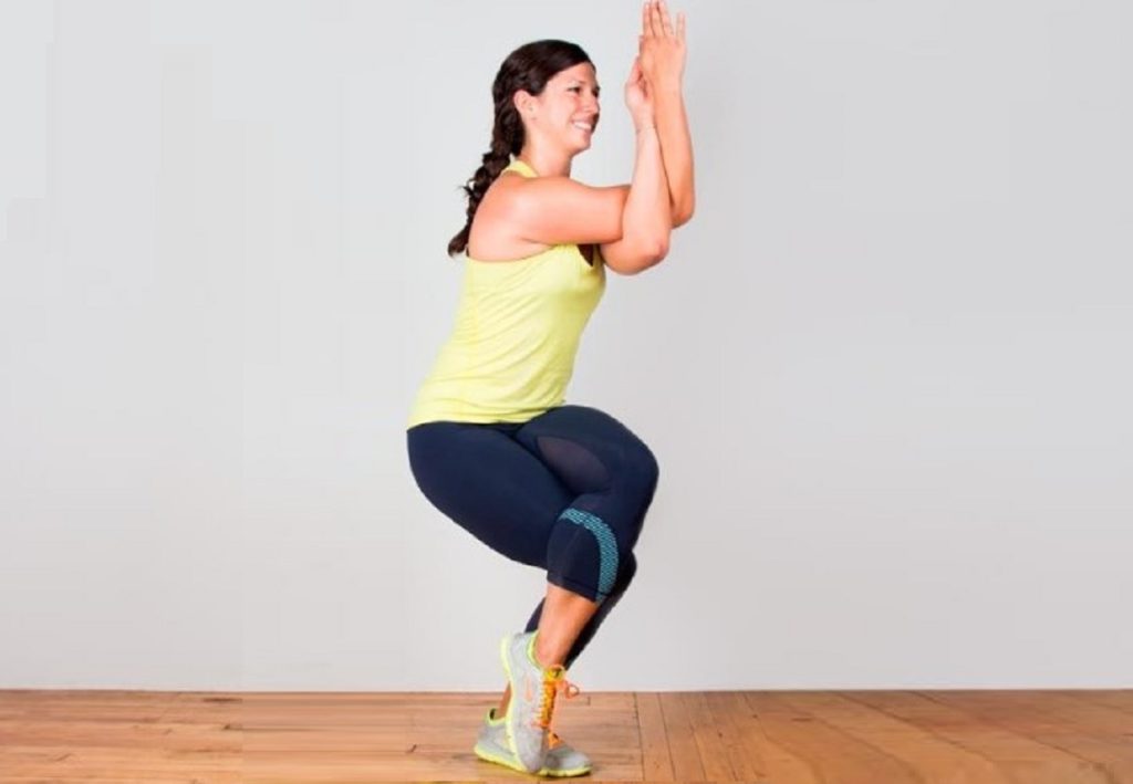 Выполните одно обычное приседание, но вместо того, чтобы возвращаться в положение стоя – задержитесь в нижней точке, когда бедра будут параллельны полу. Сделайте 3 небольших быстрых пружинящих движения тазом вверх-вниз на пар сантиметров.