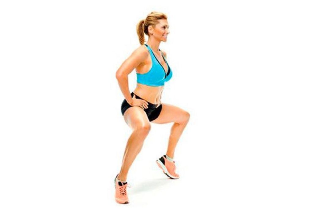 Ноги необходимо расставить широко, а носки развернуть наружу. Отведите бедра назад и приседайте до прямого угла в коленях. Напрягите ягодицы. Вернитесь в положение стоя. Можно усложнить упражнение тяжелой гирей или гантелей.